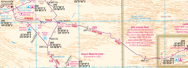 Back to the Wapet Road and then a short time on the Jenkins Track before heading east on the Gary Junction Road. Len Beadell and the Gunbarrel Road Construction Party built this road in 1960 and has been named after his son. Len put lots of markers up along his tracks and the first of these was at the beginning of the Gary Junction Road (and the intersection of the Gary Junction Road and the (so-called) Gary Highway which travels north/south. Many are replicas these days and here the original (1963) was replaced with a replica in 2004.